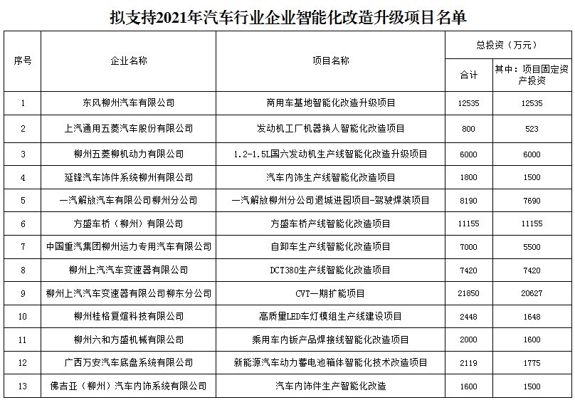 附件:擬支持2021年汽車(chē)行業(yè)企業(yè)智能化改造升級(jí)項(xiàng)目名單