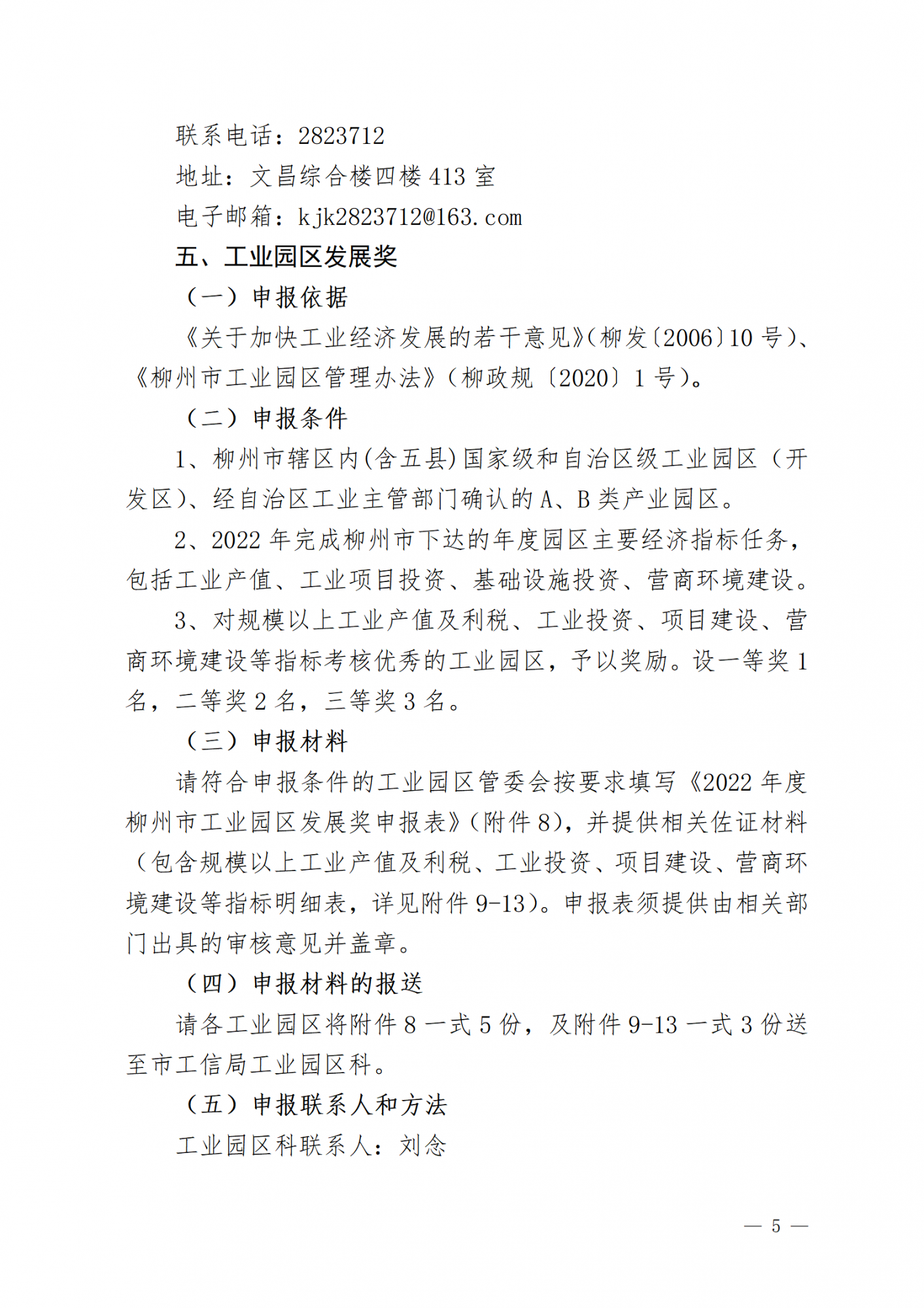 柳州市工業(yè)和信息化局關(guān)于申報(bào)2022年度做出較大貢獻(xiàn)的工業(yè)企業(yè)(園區(qū))有關(guān)獎(jiǎng)勵(lì)的通知(2023-02-28)